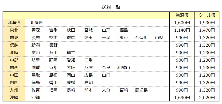 備考:沖縄県への宅配は、航空運賃が適用されております。